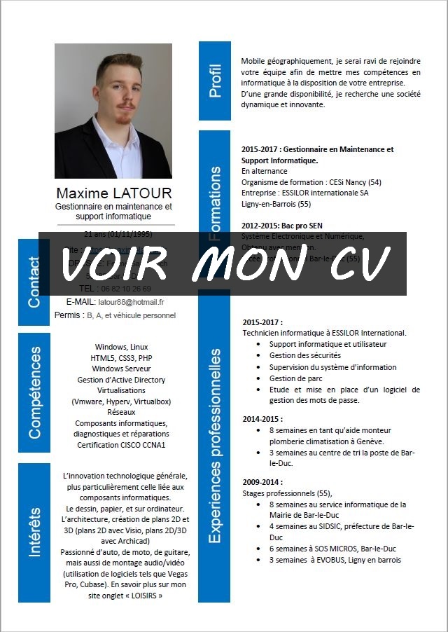 Je m'appelle Maxime LATOUR, j'ai 21 ans.